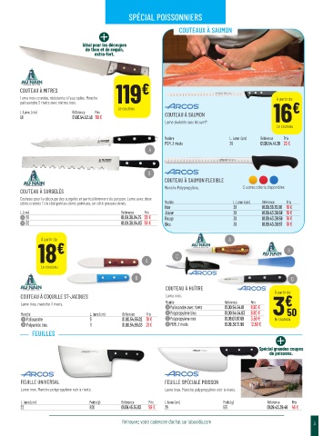 A Palissandre 9 01.00.54.55.02 18 € C Polypropylène noir 01.09.07.67.69 3,50 € le couteau