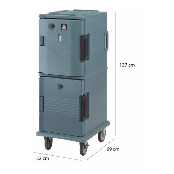 Le conteneur chauffant Cambro UPCHT8002 est conçu pour la conservation électrique des plats chauds et le transport sécurisé des préparations alimentaires. Doté de deux compartiments distincts, il permet de maintenir les aliments au chaud dans la partie supérieure chauffante, tout en conservant des produits chauds ou froids dans la partie basse en mode passif. Cette configuration offre une grande flexibilité pour les services à flux tendu.