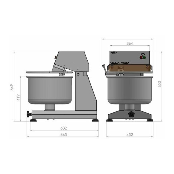 Le mélangeur à viande 30L VILLA M30 est conçu pour les ateliers de boucherie et de charcuterie recherchant un appareil robuste, silencieux et simple d’utilisation pour le mélange quotidien des viandes, farces et préparations. Son bras oblique à deux branches, relevable et démontable, garantit une homogénéité parfaite du mélange tout en réduisant le temps de travail. La cuve rotative amovible de 30 litres, équipée d’un frein, facilite le chargement, le mélange et le nettoyage. Entièrement réalisé en inox et conforme aux normes CE, ce mélangeur à viande professionnel offre une solution durable et fiable pour un usage intensif.