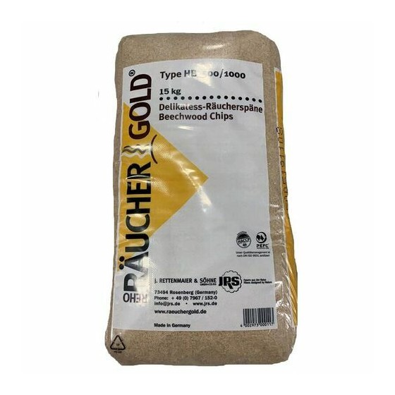 La sciure de hêtre pour fumoir RÄUCHERGOLD® est spécialement conçue pour le fumage à froid des viandes, poissons et fromages. Sa granulométrie fine garantit une combustion lente et régulière, assurant une diffusion homogène des arômes dans vos préparations. Conditionnée en sac de 15 kg, elle répond parfaitement aux besoins des professionnels des métiers de bouche tels que les bouchers, charcutiers et traiteurs.