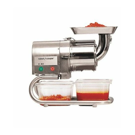 Le tamis automatique C80 Robot Coupe est un modèle de table compact conçu pour la réalisation de coulis, pulpes de fruits, mousses de légumes, fonds de sauce, bisques et soupes de poissons. Il sépare efficacement pépins, noyaux, fibres et carcasses sans les broyer. Grâce à son introduction continue des produits, le tamis automatique C80 Robot Coupe permet un véritable gain de temps en cuisine professionnelle et facilite la production de préparations "fait maison".