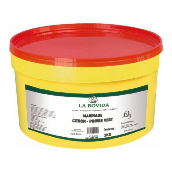 Ingrédients : Huiles végétales (colza, sal), sel, épices et plantes aromatiques (poivre vert, oignon, poivre noir, persil, piment fort), aromes naturels de poivre vert, de citron vert, de citron et de poivre noir, sucre roux, sirop d'agave, acidifiant : acide citrique E330, jus concentré de citron, jus de citron, arôme naturel, concentré (carthame, citron), piment fort.