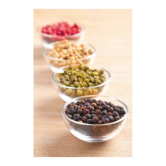 Le mélange 4 poivres entiers relève toutes vos préparations culinaires, grâce au mariage des saveurs qu'apportent les différentes variétés de poivres.