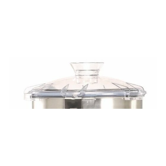 Le couvercle en polycarbonate assure un contrôle permanent de la préparation. Il permet l’ajout de liquides ou d’ingrédients en cours de fabrication. Son joint garantit une parfaite étanchéité. Le montage et démontage sont rapides, et le nettoyage peut être réalisé au lave-vaisselle.