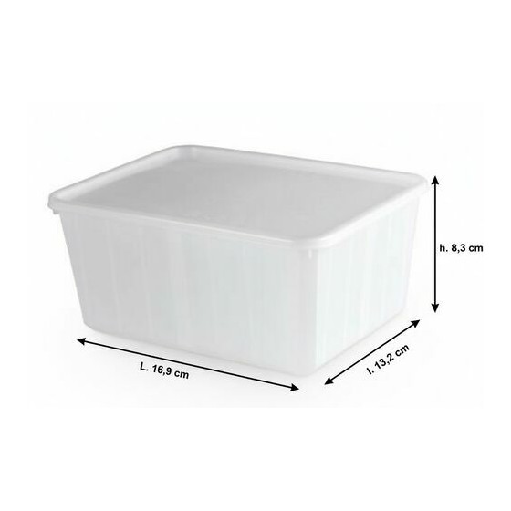 Sa capacité de 1,35 L et sa conception rectangulaire en font un contenant idéal pour le transport, la protection et la présentation de vos plats. Vendue avec son couvercle indépendant, cette boite plastique avec couvercle assure une étanchéité parfaite et un design moderne apprécié de la clientèle.
