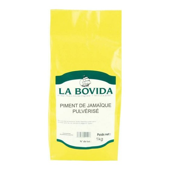 En sac de 1 kg pulvérisé, le piment de Jamaïque est prêt à l'emploi et peut également être ajouté aux plats sucrés.