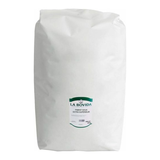 Sac de 25kg de piments rouges doux broyés en fine poudre.