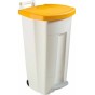 Cette poubelle est fonctionnelle et pratique pour la collecte des déchets et le tri sélectif avec son couvercle de couleur.