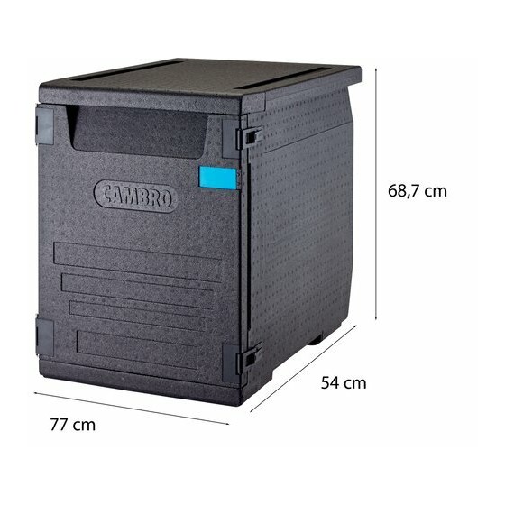 Les poignées sur les quatre côtés simplifient la manutention, même en environnement contraint. L’ouverture à 270° permet un accès complet aux produits lors du service. Ce modèle répond aux exigences des traiteurs, restaurateurs et professionnels de la livraison de repas en volume.