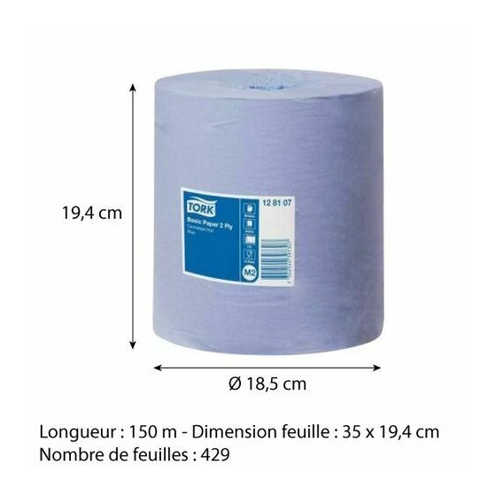 Bobine essuyage Tork bleue 2 plis 429 feuilles - par 6
