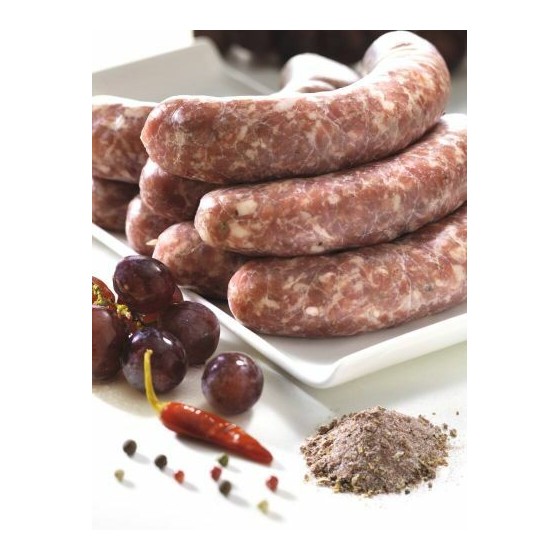 Sel ; extrait de vin rouge distillé (sulfites), maltodextrine ; dextrose ; plante aromatique et épices : (échalote, poivre noir, poivre vert, macis) ; colorant : betterave en poudre ; antioxydant : ascorbate de sodium ou E301 ; acidifiant : lactate de sodium ou E325 ; conservateur : acétate de sodium ou E262 ; sucre ; arôme naturel et arômes (sulfites).