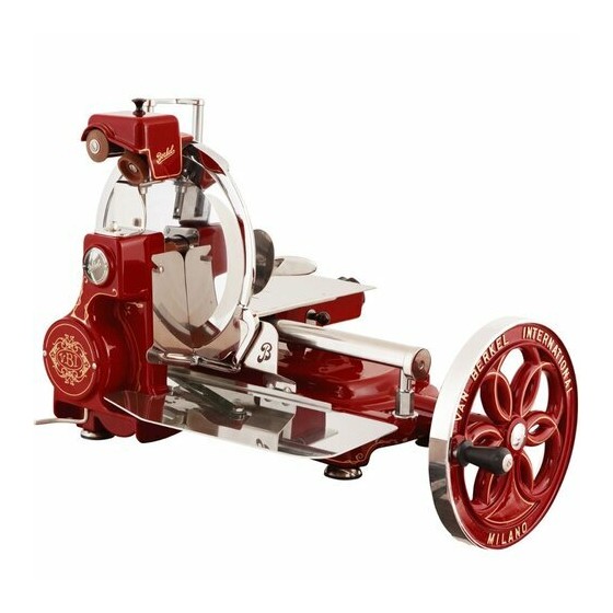 La trancheuse a volant rouge B114 est un équipement manuel haut de gamme conçu pour les artisans bouchers, charcutiers et traiteurs souhaitant associer précision de coupe et esthétique premium. Cette trancheuse manuelle à volant, entièrement mécanique et sans électronique, garantit une fiabilité remarquable et une qualité de tranche exceptionnelle, particulièrement appréciée pour les jambons crus et charcuteries fines. Son volant emblématique donne à votre point de vente une dimension premium comparable à une trancheuse à volant Berkel tout en offrant un rendement optimal.