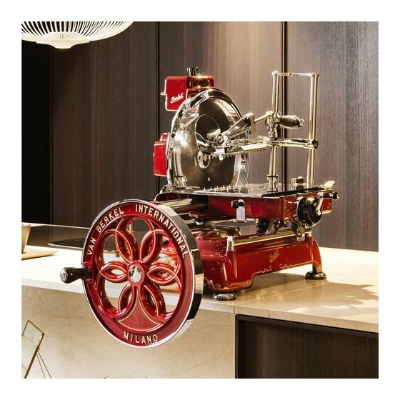 La trancheuse manuelle a volant B114 combine précision mécanique et mise en valeur visuelle. Son système manuel permet une coupe parfaitement régulière sans échauffement, ce qui préserve les fibres et optimise le rendu des charcuteries haut de gamme. Avec sa grande capacité de coupe et sa lame chromée, elle répond aux exigences des artisans souhaitant proposer une découpe authentique. Grâce à son esthétique rouge profonde et ses finitions inox, elle joue également un rôle décoratif, comparable à une trancheuse à volant Berkel, tout en apportant une touche premium à votre point de vente.