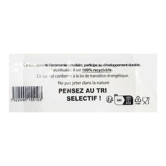 Compact et facile à stocker, il optimise l’organisation en caisse. Son épaisseur de 50 µ autorise un réemploi par le client selon l’usage. Il constitue une solution fonctionnelle pour un service rapide et efficace.