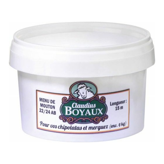 Ces boyaux mouton 22/24 sont très appréciés par les professionnels de la boucherie et de la charcuterie. Ils sont résistants et souples pour une utilisation facile et efficace. Ces boyaux mouton pour merguez permettent de réaliser environ 4 kg de production. Ils se conservent dans du saumure saturée et sont à l'abri de l'environnement extérieur. Idéal pour la fabrication artisanale de merguez, chipolatas ou autres saucisses fines, ce boyau naturel garantit un rendu professionnel à chaque utilisation.