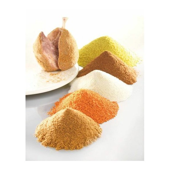 Panure d’enrobage jaune saveur de pain, colorée dans la masse, croustillante en bouche après cuisson.
