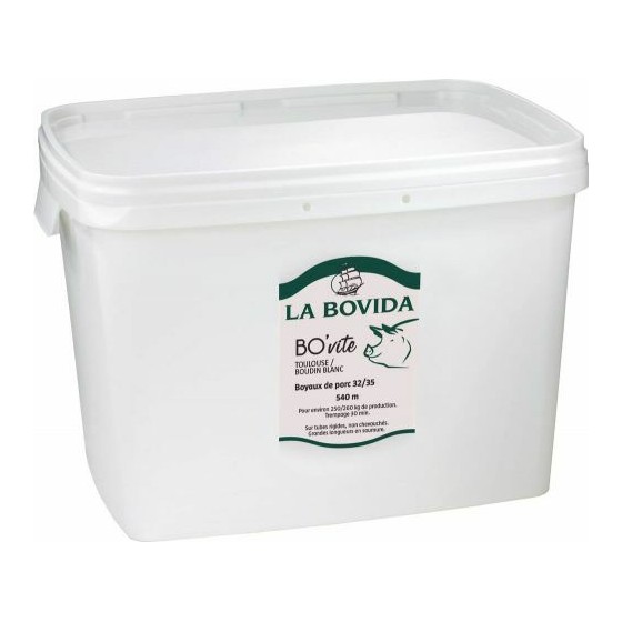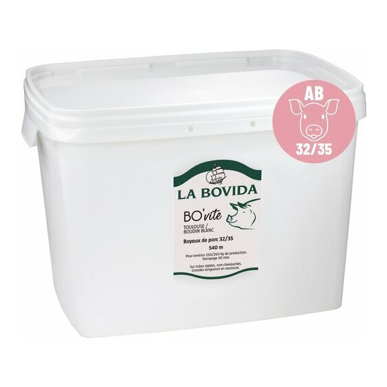 Ce boyau de porc Bo'vite est proposé en calibre 32/35, plissé sur tube rigide. Il est conçu pour accélérer la mise en boyau et sécuriser vos cadences au poussoir. Le format en tube limite les manipulations et aide à tirer le meilleur rendement de chaque longueur. Idéal pour une production régulière de saucisses et boudins.