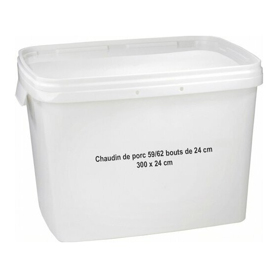 Ce boyau chaudin de porc en bouts est parfait pour la réalisation de saucissons, boudins noirs ou encore andouille de vire. Son calibre de 59/62 et ses 300 bouts de 24 cm en font un indispensable pour les professionnels de la charcuterie et de la boucherie.