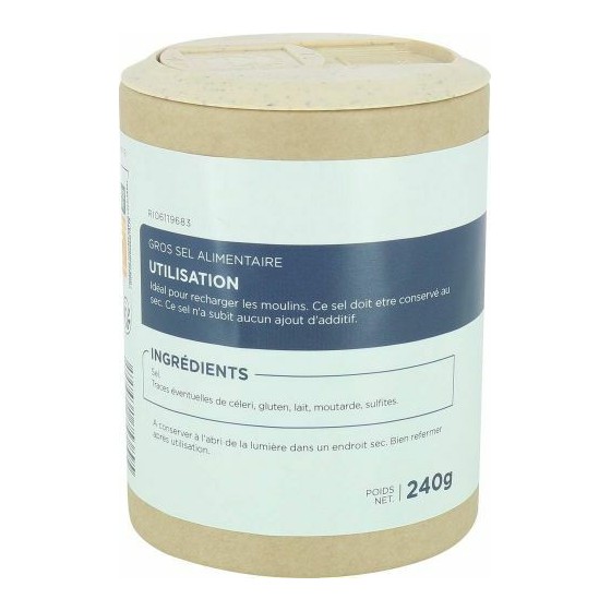 Gros sel alimentaire, idéal pour recharger les moulins. Ce sel n'a subi aucun ajout d'additif. Il sera parfait pour assaisonner l'eau de cuisson de vos féculents, vos soupes, quiches, viandes, poissons, légumes...