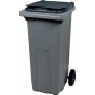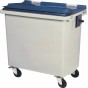 Container en plastique gris de 660 litres équipé de 4 roues.