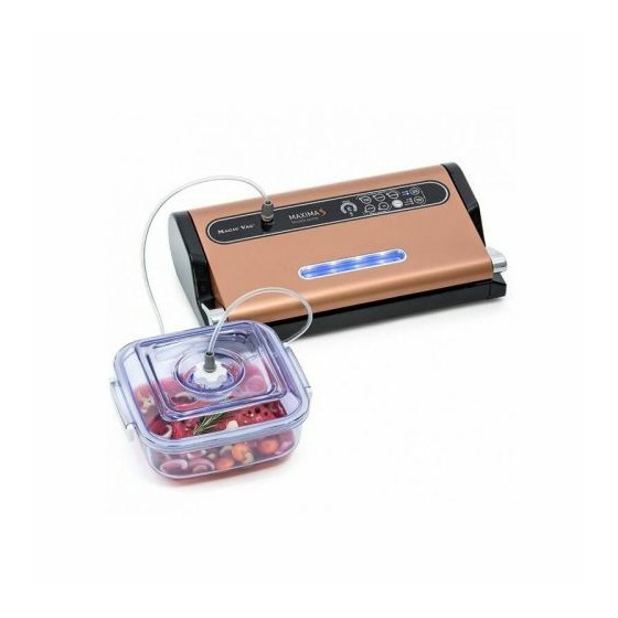 Machine sous vide Perfetta, permet de réaliser le vide en sac comme en bacs. Coupe sacs intégré.
