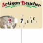 Etiquette artisan charcutier sans texte, à pique inox et à tournettes pour affichage du prix de vente au kg, au 100 g, à la pièce ou douzaine.
