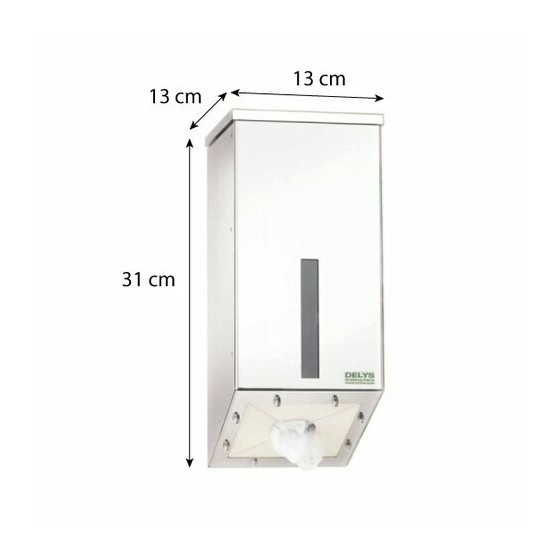 Distributeur inox 18/10 petit modèle pour charlottes, couvre-chaussures et vrac...., fixation murale, capacité d'environ 100 unités. Métiers de bouche, collectivités, GMS, boucherie, charcutier, traiteur... CE