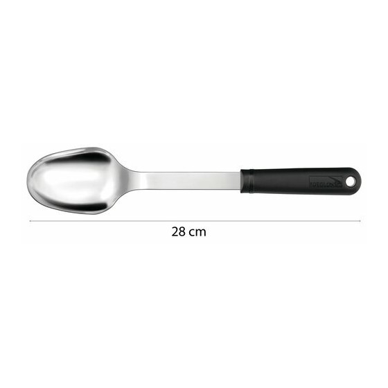 La cuillère pleine Stop'Glisse 28 cm est conçue pour assurer un service précis et régulier en restauration collective, cafétéria et traiteur. Son cuilleron de 16 cm, d’une capacité de 50 ml, permet de servir une portion maîtrisée en un seul geste. Sa profondeur et sa surface ont été étudiées pour garantir constance et efficacité en ligne de self ou en vitrine. Elle répond aux exigences d’un usage quotidien intensif.