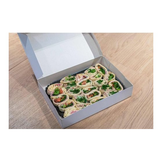 - La boite traiteur 28x42 est adaptée au conditionnement de plateaux de mini-fours, mignardises ou produits traiteur à emporter.