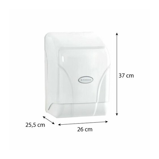 Distributeur grand modèle à dévidage central, en plastique blanc et gris.