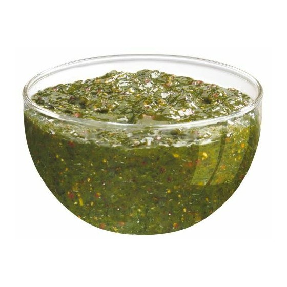 Huiles végétales (colza, sal) ; sel ; plantes aromatiques et épice (ail des ours 3%, poivre, persil, menthe) ; poivron rouge ; vinaigre d’alcool ; extraits de curcuma et d’ail.
