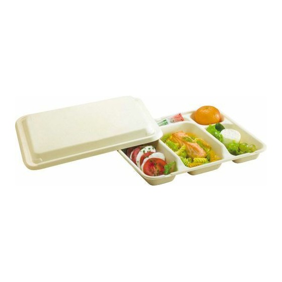 Couvercle en bagasse pour plateau repas 5 compartiments