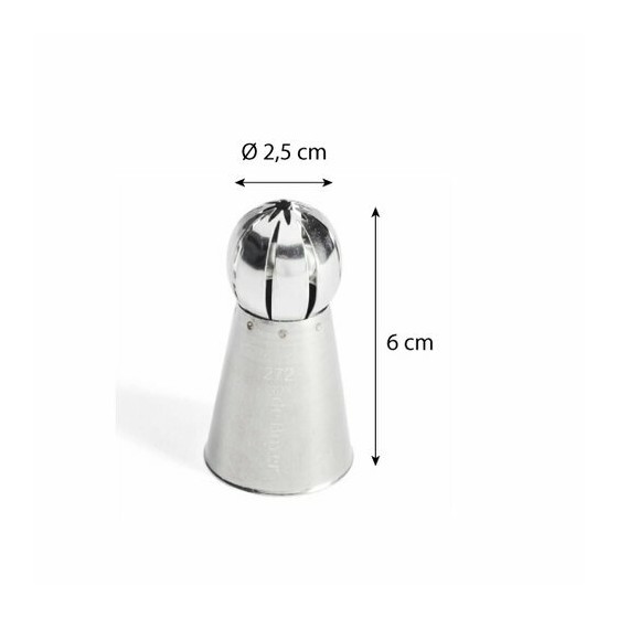 - Cette douille permet de confectionner des sphères en crème pour réaliser des décors d’entremets originaux.