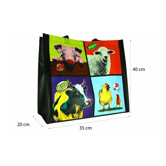 Sac réutilisable PP tissé "Animaux colorés" 40 x 35 + 20 cm - par 100