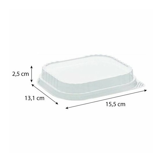 Pratique et robuste, ce couvercle en APET est conçu pour les barquettes aluminium 57,9 cl, pour une conservation optimale et un transport en toute sécurité.