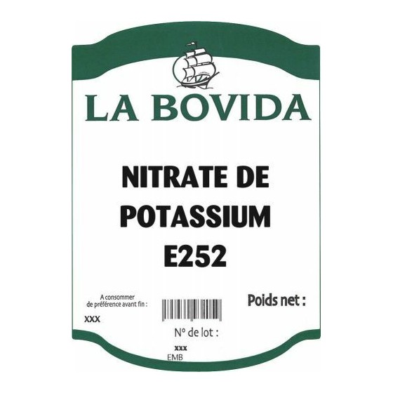 Dit 'salpêtre'. Conservateur E252 d'origine minérale.