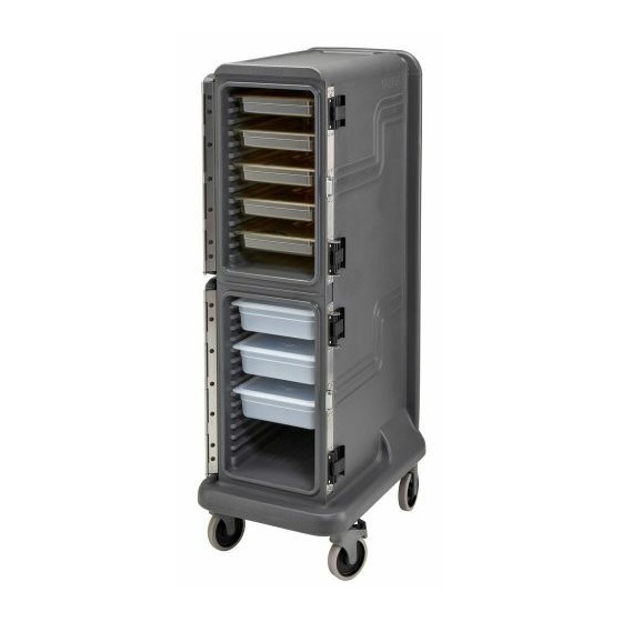 Le Pro Cart Ultra Cambro répond aux contraintes logistiques des professionnels de la restauration et du traiteur. Sa conception permet de transporter dans un seul chariot des préparations chaudes et froides tout en respectant les exigences de sécurité alimentaire. Les rails moulés assurent un maintien stable des bacs gastronormes lors des déplacements. Les poignées ergonomiques pleine hauteur facilitent la manipulation, même lorsque le chariot est chargé. Grâce à ses roulettes robustes et sans entretien, il se déplace facilement entre cuisine, laboratoire et zone de service. Ce chariot isotherme professionnel devient rapidement un outil essentiel pour sécuriser vos livraisons et gagner en efficacité opérationnelle.