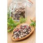 Les grains du poivre noir ont un péricarpe ridé et de couleur brune, grise ou noir.