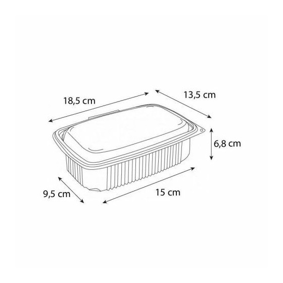 Sa capacité convient aux plats complets individuels, recettes en sauce ou préparations traiteur destinées à la vente à emporter. Le couvercle transparent assure une visibilité immédiate du contenu et facilite la lecture du produit en vitrine.