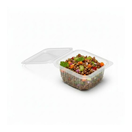 Sa contenance et sa conception en font une boite plastique parfaite pour les salades composées, entrées et desserts de traiteur ou de grande surface. Totalement transparente, elle met en valeur vos produits frais et facilite l'acte d'achat de votre clientèle. Grâce à son couvercle à charnière, le transport est sécurisé et le rangement optimisé.