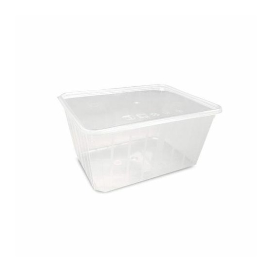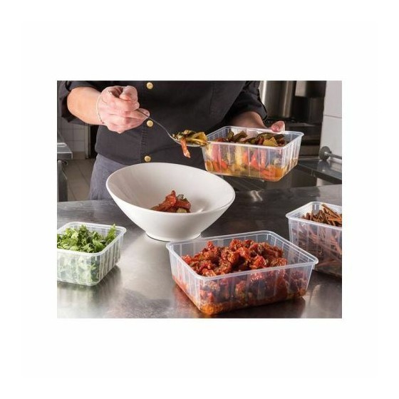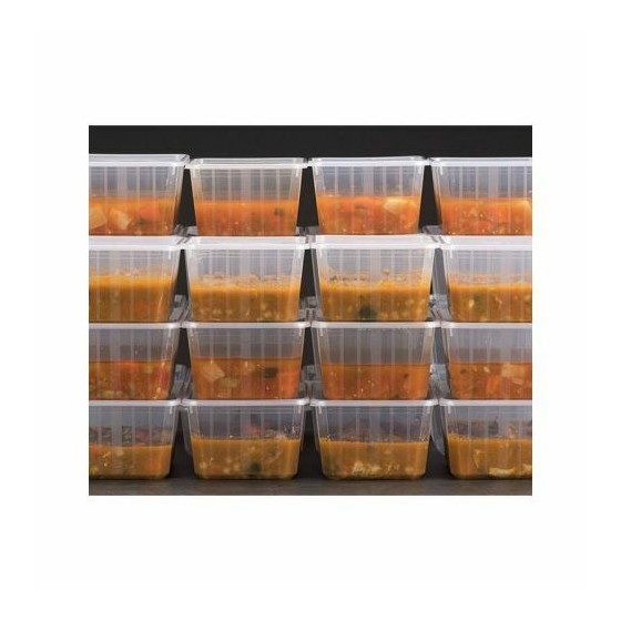 Transportez et protégez vos préparations froides et chaudes en toute sécurité avec cette boîte plastique rectangulaire.