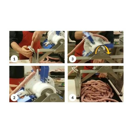 - Fixation : Placez l'extrémité de la saucisse dans la pince et accompagnez le mouvement de rotation.