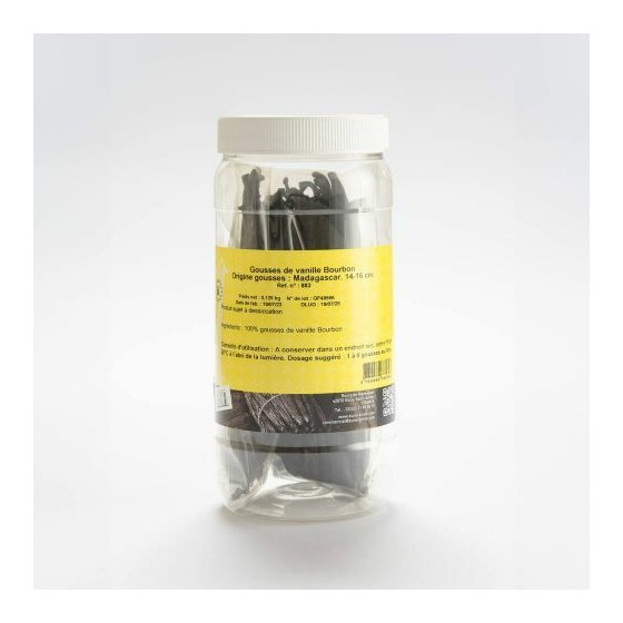 Les Gousses de Vanille Bourbon en pot de 125 g sont issues de la variété botanique Planifolia, récoltées à Madagascar.