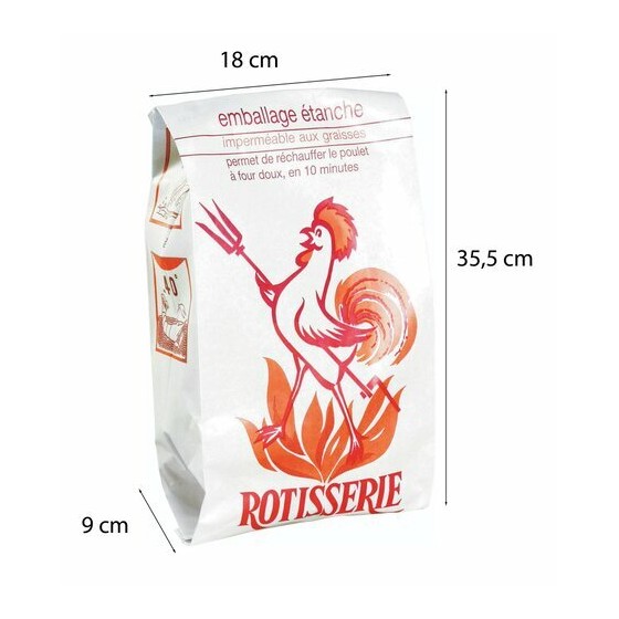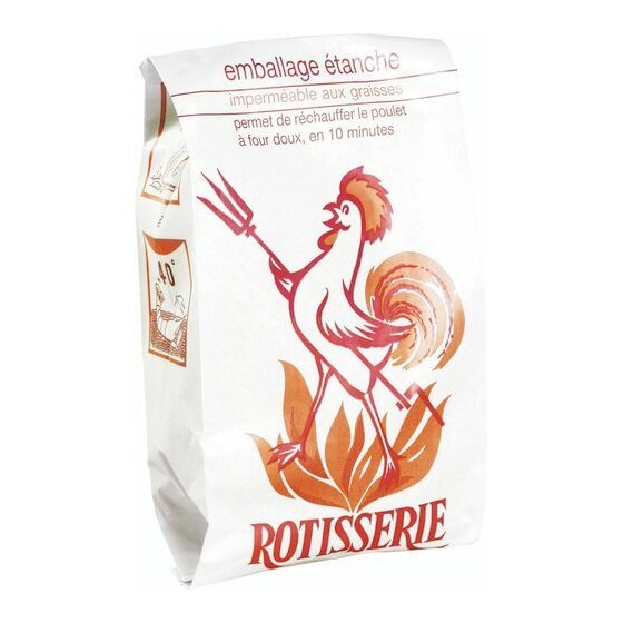 Conçu pour la vente à emporter, le sac poulet rôtisserie assure une conservation optimale des produits. Il allie praticité et hygiène, idéal pour les rôtisseries et les grandes surfaces.