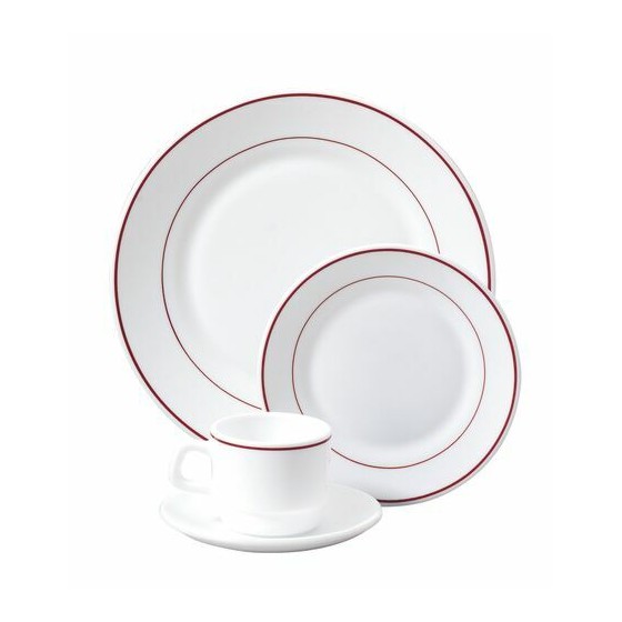 Cette assiette blanche creuse avec son filet bordeaux sublime tous les dressages tout en résistant aux contraintes du quotidien en cuisine.