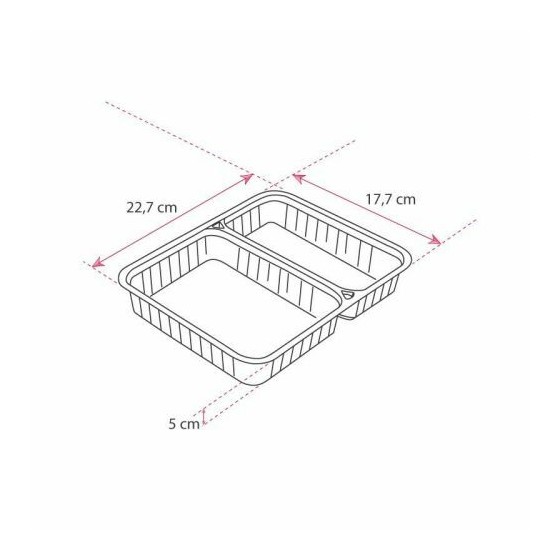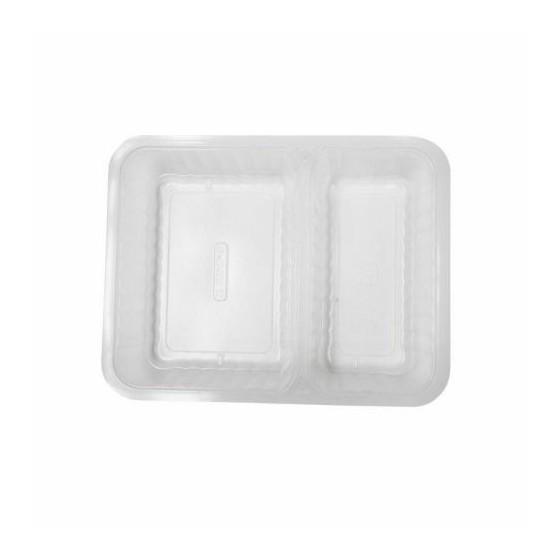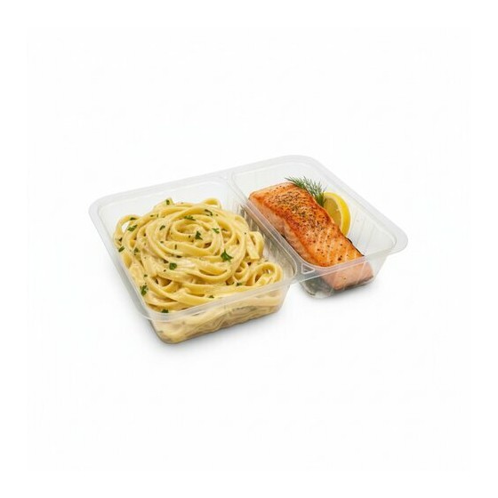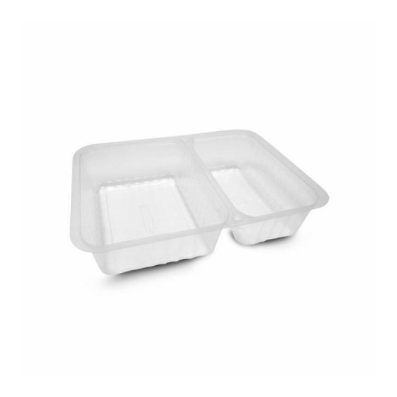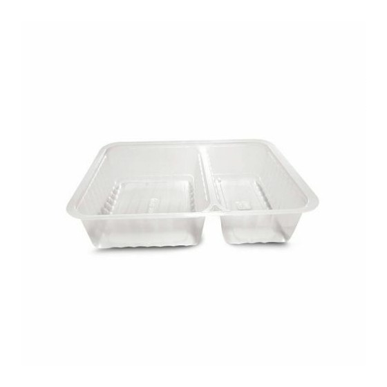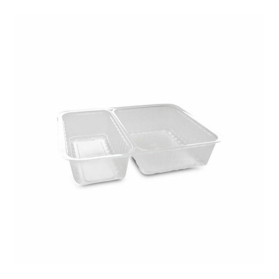 - Barquette plastique transparente 2 compartiments : idéale pour séparer sauce et accompagnement ou plat principal.