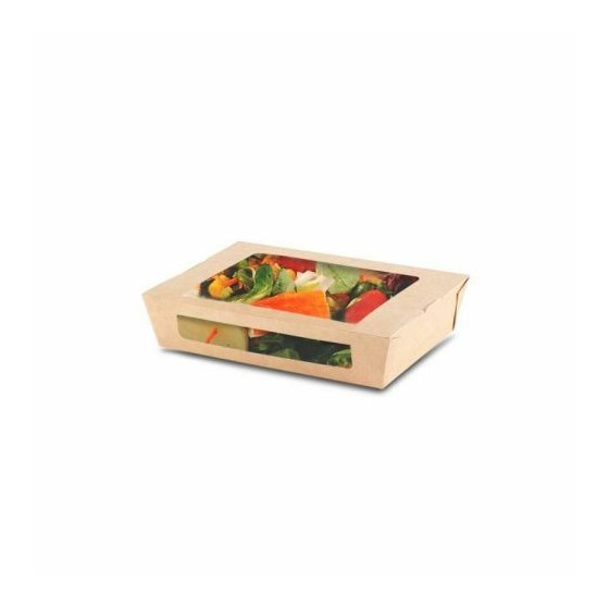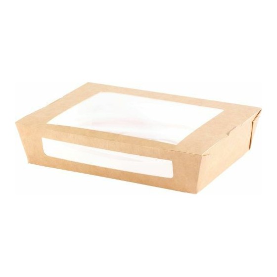 Barquette kraft brun biodégradable 1200 ml avec fenêtre PLA pour préparations froides