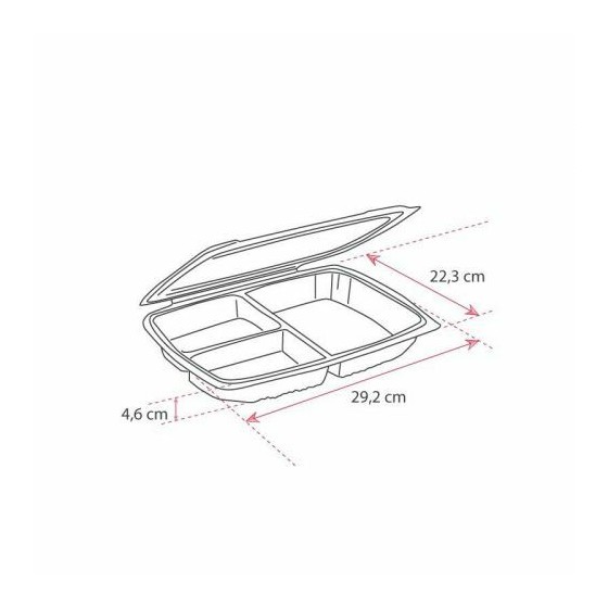 La boite à couvercle à charnière 3 compartiments est conçue pour faciliter le stockage, le transport et la présentation de vos préparations culinaires.
