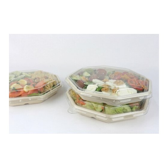 Sa forme octogonale apporte une présentation soignée tout en offrant une bonne stabilité des aliments. Avec une capacité d’environ 830 ml, cette assiette permet de servir des plats froids ou chauds dans de nombreuses situations : restauration rapide, traiteur, événementiel ou vente à emporter.