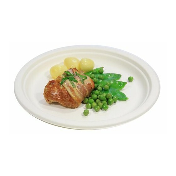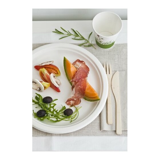 L'assiette ronde en bagasse ø 23 cm est conçue pour le service des plats en restauration, traiteur ou vente à emporter. Son format généreux permet de présenter efficacement des portions complètes tout en conservant une présentation propre et professionnelle. Fabriquée à partir de fibres végétales naturelles, cette assiette est à la fois rigide et légère. Sa finition blanche met en valeur les préparations culinaires et s’adapte facilement à différents environnements : restauration rapide, buffets, événements ou restauration collective.